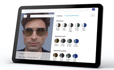 Auf dem Bildschirm können wir Ihnen bereits vor Fertigung Ihrer individuellen Brillengläser deren Wirkung in der Brillenfassung simulieren. Egal ob Tönung, Entspiegelungs-Typ, Verspiegelung oder Brillenglasränder: Sie erhalten bereits vor dem Kauf Ihrer Brille einen realistischen Eindruck Ihren neuen Brille und Ihrer neuen ZEISS Brillengläser.